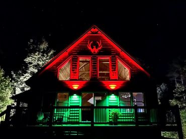 - “Flying Monkey” log bedroom with one queen memory foam bed, one twin XL memory foam bunk bed, one twin XL memory foam bed, 50” plasma TV, closet, & blackout window shades.