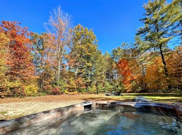 - Private backyard including 6-person hot tub available year round, wood burning fire pit with Adirondack chairs, and winter mountain views. Perfect for relaxing after a day on the slopes, golf course, or exploring nearby lakes & villages.